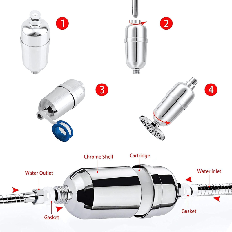 Experience the transformative power of clean, purified shower water with our innovative Advanced Shower Filter. This cutting-edge filtration system employs a 20-stage process to effectively eliminate a wide range of contaminants, including chlorine, dirt, rust, bacteria, limescale, sand, and heavy metals.