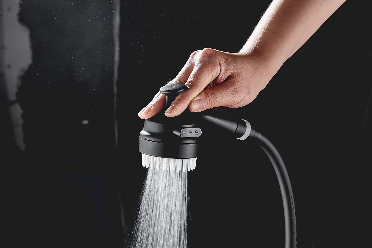 Détachez la pomme de douche et rincez-la sous l'eau tiède, en éliminant tous les débris ou résidus, et nettoyez la buse avec une brosse si nécessaire.