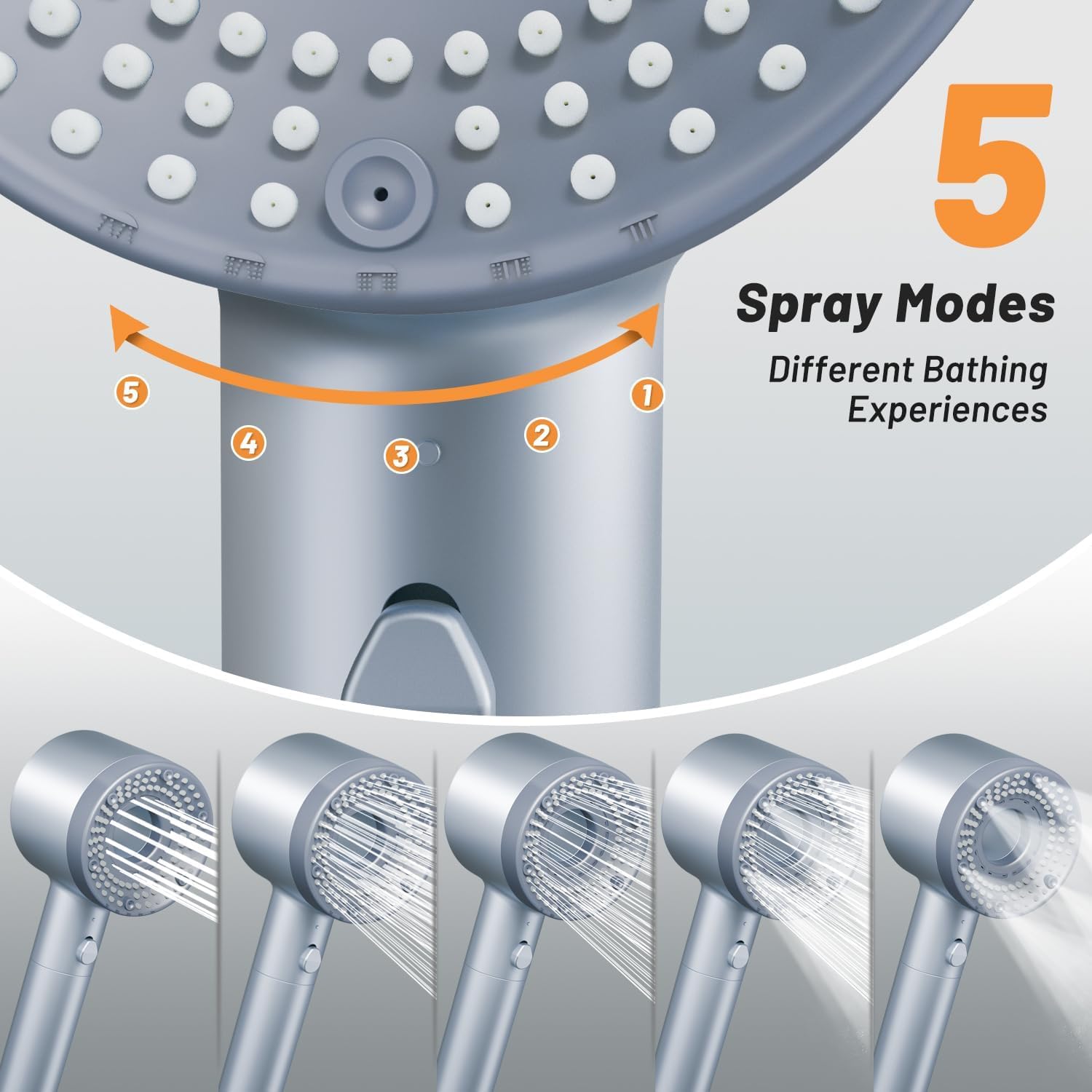 Effortlessly switch between Rain, Spray, Pulse, and Fog modes for a personalized shower experience. Featuring 5-level hydraulic regulation, one-click water stop, and easy-to-clean removable parts, this shower head provides ultimate convenience. Enjoy clean water with the PAC composite filter, and simple maintenance with durable silicone nozzles.